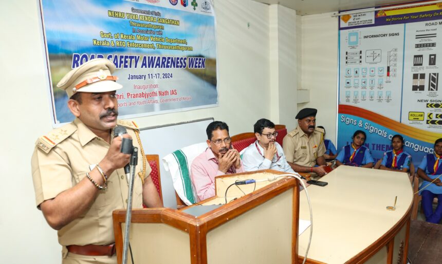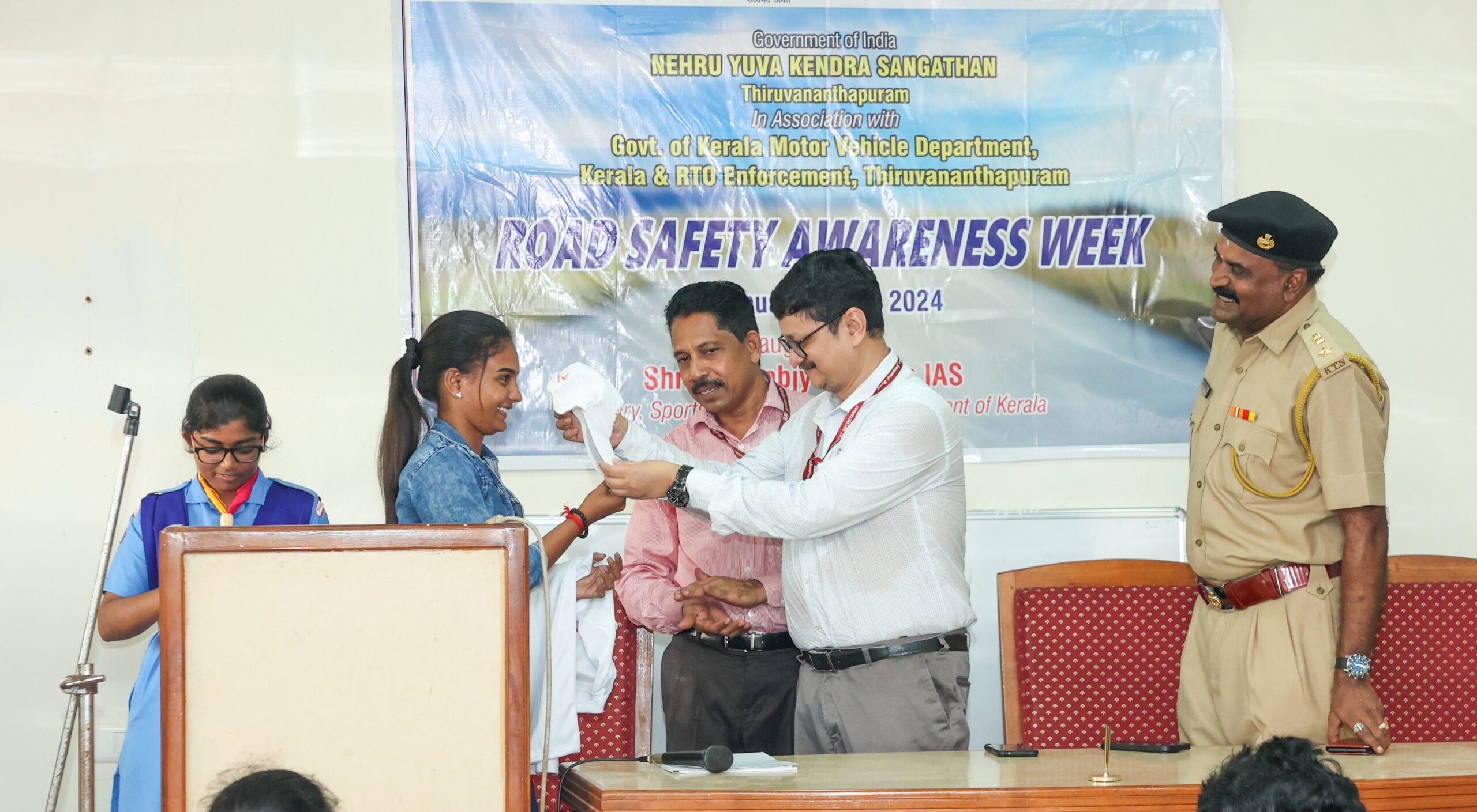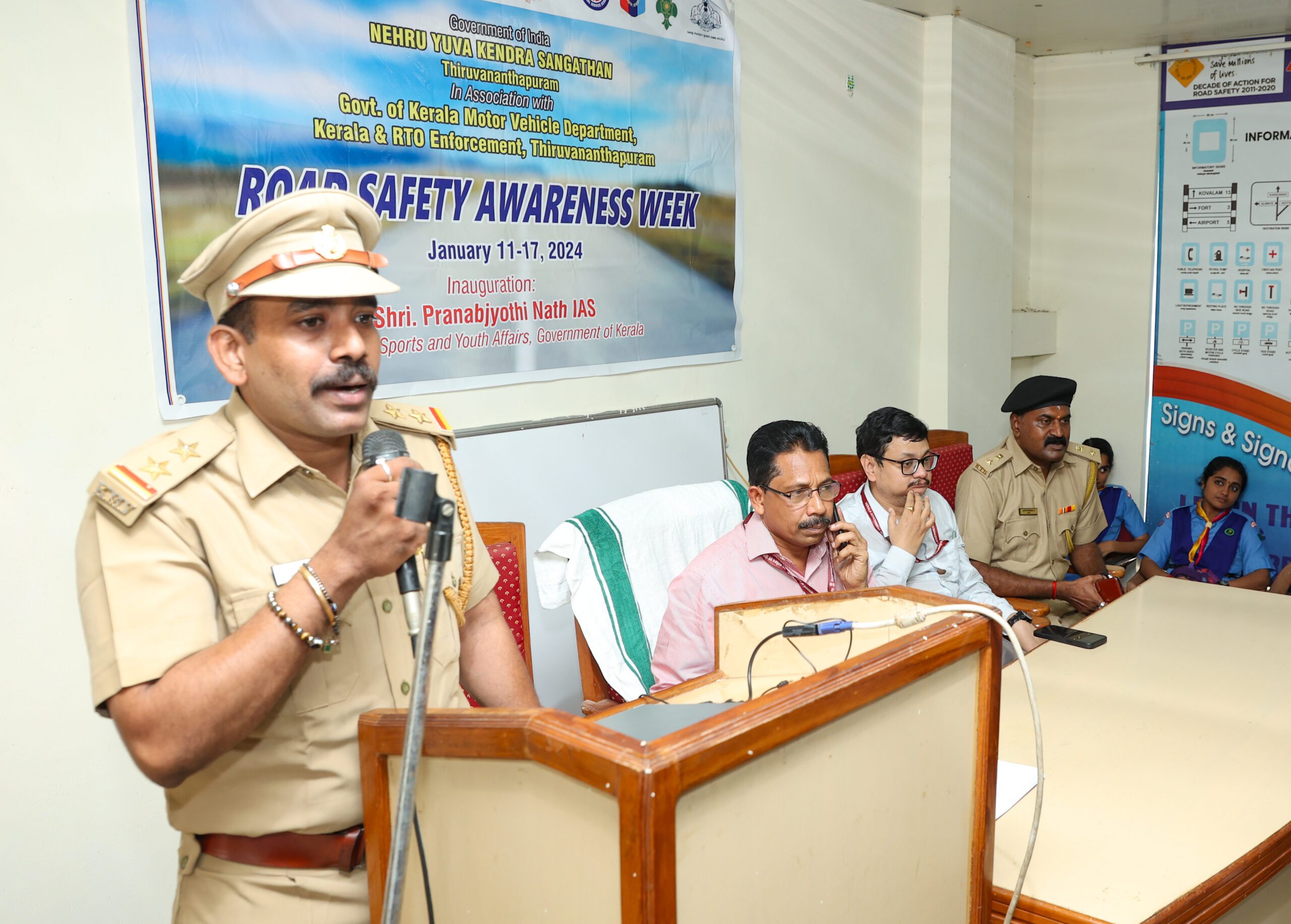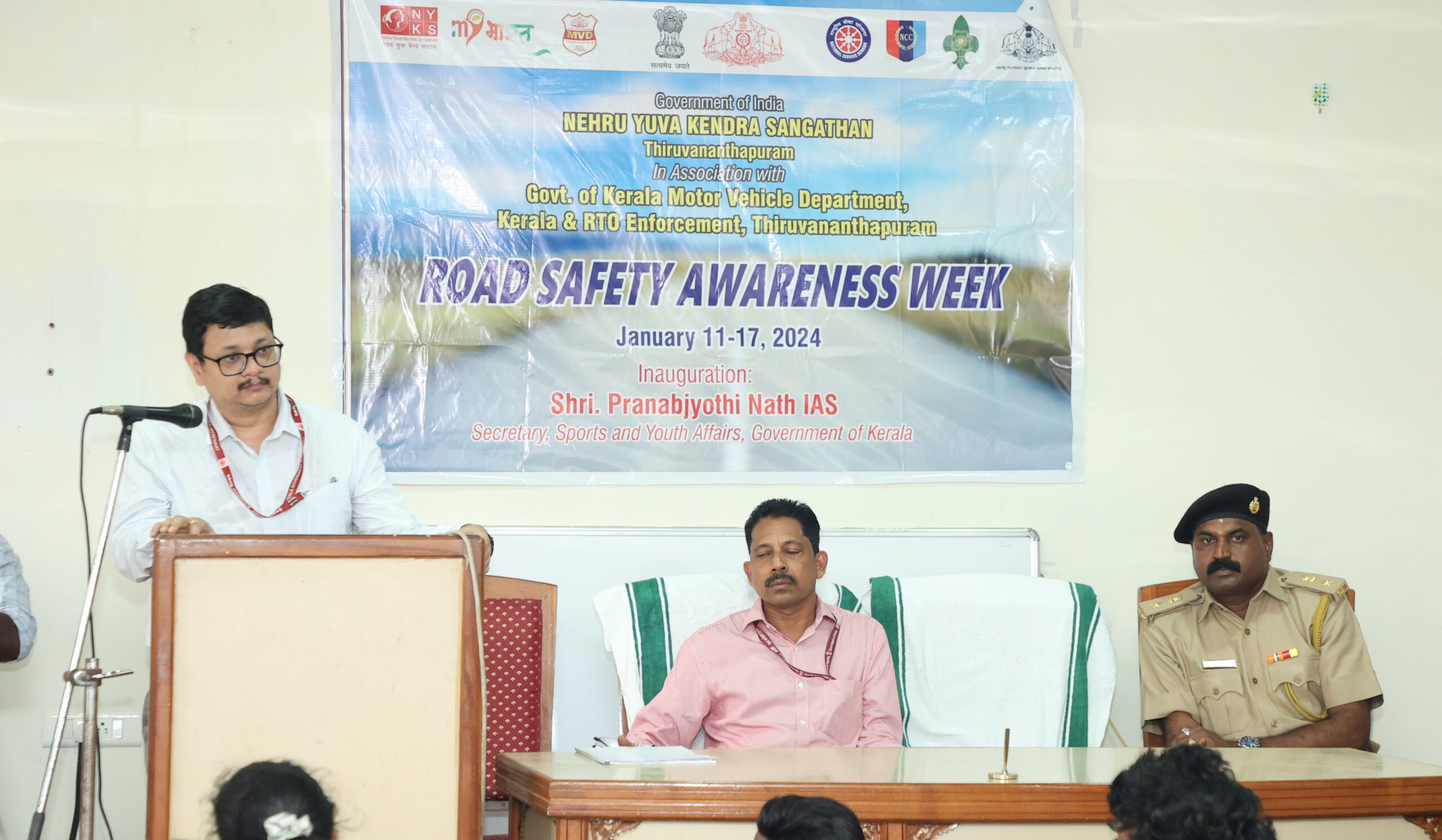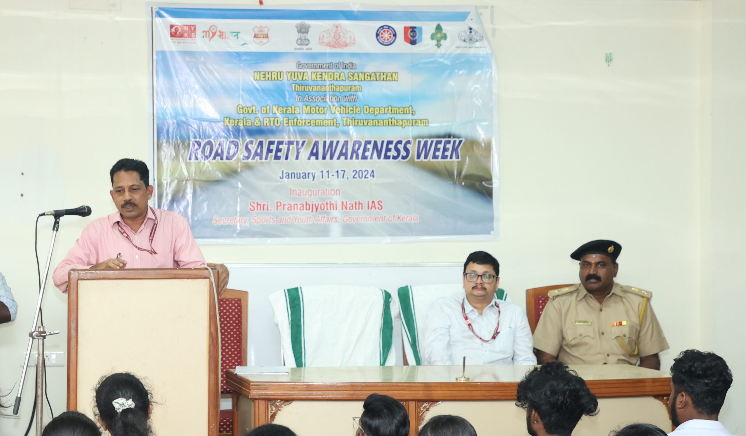 ദേശീയ റോഡ് സുരക്ഷ വാരാചരണത്തിന്റെ ഭാഗമായി തിരുവനന്തപുരം ജില്ലയിലെ മൈ ഭാരത് വോളണ്ടിയർമാർക്ക് റോഡ് സുരക്ഷ ബോധവത്കരണത്തിൽ പരിശീലനം നൽകി. സംസ്ഥാന കായിക-യുവജനകാര്യ വകുപ്പു സെക്രട്ടറി പ്രണബ് ജ്യോതി നാഥ് ഐ എ എസ് പരിപാടി ഉദ്ഘാടനം ചെയ്തു. സുരക്ഷിതമായ റോഡ് യാത്ര ഉറപ്പാക്കുന്നതിൽ രാജ്യത്തെ യുവാക്കൾക്ക് പ്രധാന പങ്കുവഹിക്കാനാകുമെന്നും വിദ്യാർത്ഥികൾ സ്വയം മാതൃക സൃഷ്ടിക്കണമെന്നും അദ്ദേഹം പറഞ്ഞു.