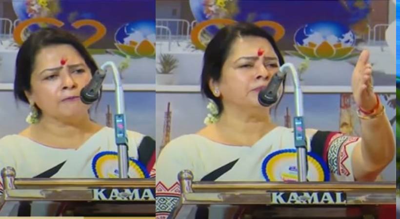മന്ത്രി മീനാക്ഷി ലേഖി വീണ്ടും മുദ്രാവാക്യം ആവര്ത്തിച്ചെങ്കിലും സദസിലെ ചിലര് ഏറ്റുവിളിച്ചില്ല. ഇത് മന്ത്രിയെ പ്രകോപിപ്പിച്ചു. ഭാരതം നിങ്ങളുടെ കൂടെ അമ്മയല്ലെ…ഭാരത് മാതാ കീ ജയ് വിളിക്കാത്തവര്ക്ക് വേദി വിട്ടു പോകാം എന്നായിരുന്നു മന്ത്രി ക്ഷോഭത്തോടെ പ്രതികരിച്ചത്.രാജ്യത്തെക്കുറിച്ച് ഓര്ത്ത് അഭിമാനിക്കാൻ പോലും മടിയുള്ളവരുണ്ടെന്നും അത്തരക്കാരാണ് ഭാരത് മാതാ കീ ജയ് വിളിക്കാതിരിക്കുന്നതെന്നും മന്ത്രി വിമര്ശിച്ചു.