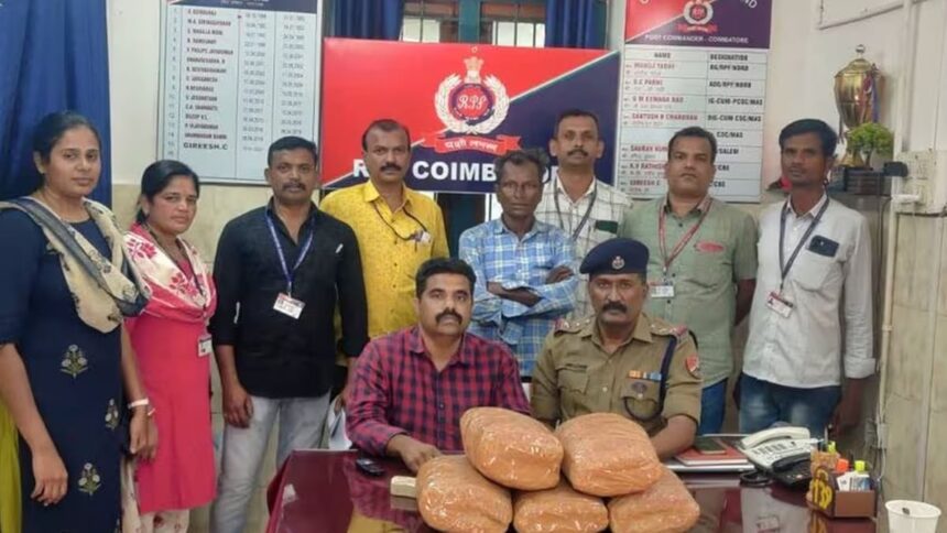 ആർപിഎഫിന്റെ കീഴിലുള്ള കോയമ്പത്തൂർ ക്രൈം വിങിന് ലഭിച്ച രഹസ്യവിവരത്തിന്റെ അടിസ്ഥാനത്തിലാണ് നടപടി. പ്രതിയെ നർക്കോട്ടിക് ഇൻവെസ്റ്റിഗേഷൻ ബ്യൂറോയ്ക്ക് കൈമാറി.