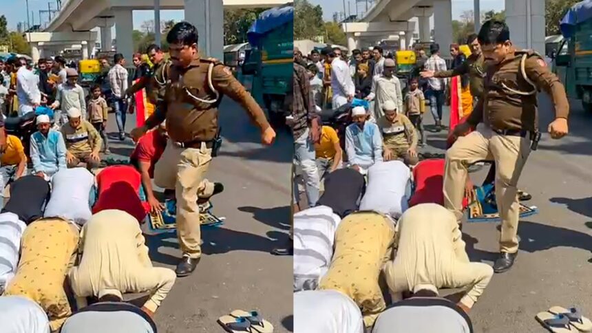 റോഡിൽ നിസ്കരിക്കുന്നതിനിടെ വിശ്വാസികളെ ചവിട്ടിയ സബ് ഇൻസ്പെക്ടറെ സസ്പെൻഡ് ചെയ്തു. ഡൽഹി ഇന്ദർലോക് മെട്രോ സ്റ്റേഷനു സമീപം വെള്ളിയാഴ്ച ഉച്ചയ്ക്ക് ജുമാ നമസ്കാരം നടത്തിയവരെയാണ് ഇൻസ്പെക്ടർ മർദ്ദിച്ചത്. റോഡിൽ നിസ്കരിക്കുന്നവരെ സബ് ഇൻസ്പെക്ടർ മനോജ് കുമാർ തോമർ ചവിട്ടുകയും മുഖത്തടിക്കുകയും ചെയ്തു. സംഭവത്തിന്റെ വിഡിയോ വൈറലായതിന് പിന്നാലെയാണ് നടപടി.