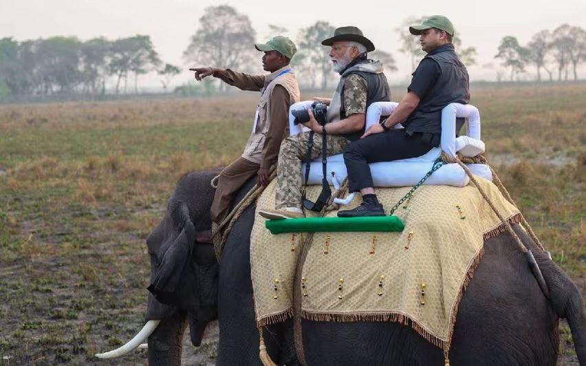 ദേശീയോദ്യാനത്തിൽ പ്രധാനമന്ത്രി ആനപ്പുറത്തും ജീപ്പിലും സവാരി നടത്തിയ വീഡിയോ സമൂഹ മാദ്ധ്യമങ്ങളിൽ വൈറലായി. രണ്ട് ദിവസത്തെ അസം സന്ദർശനത്തിന്റെ ഭാഗമായി വെള്ളിയാഴ്ച വൈകിട്ടാണ് നരേന്ദ്രമോദി കാസിരംഗ ദേശീയോദ്യാനത്തിലെത്തിയത്. ഇവിടെ നിന്ന് ജോഹർട്ട് ജില്ലയിലെ മെലംഗ് മെതെലി പോത്തറിലേക്കുപോകുന്ന പ്രധാനമന്ത്രി 18,000 കോടി രൂപയുടെ കേന്ദ്ര-സംസ്ഥാന പദ്ധതി ഉദ്ഘാടനവും തറക്കല്ലിടലും നിർവഹിച്ചതിന് ശേഷം പൊതുസമ്മേളനത്തിലും പങ്കെടുക്കും.