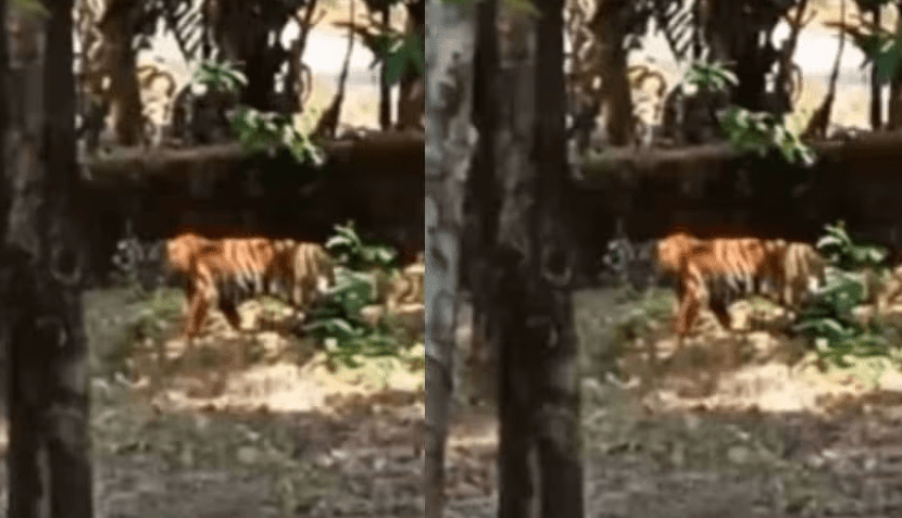 ശനിയാഴ്ച ഉച്ചയ്ക്ക് ഒന്നരയോടെയാണ് ടാപ്പിങ്ങ് കഴിഞ്ഞു സ്കൂട്ടറില് മടങ്ങുകയായിരുന്ന കരിനാട്ട് ബോബി, ചവറയ്ക്കല് ബാബു എന്നിവര് അടയ്ക്കാത്തോട് – കരിയംകാപ്പ് റോഡില് കടുവയെ കണ്ടത്. റോഡ് മുറിച്ചുകടന്ന കടുവ റബര് തോട്ടത്തിലേക്ക് പോവുകയായിരുന്നു.കടുവ അവിടെ തന്നെ നിന്നതോടെ ബോബി ദൃശ്യങ്ങള് ഫോണില് പകര്ത്തി. ഈ സമയത്ത് തന്നെ സ്കൂള് വിട്ടു നടന്നു വരുകയായിരുന്ന നാല് വിദ്യാര്ഥികളും കടുവയുടെ മുന്നില്പെട്ടു. കടുവയെ കണ്ട് പേടിച്ച രണ്ട് വിദ്യാര്ഥികള് ഓടി രക്ഷപെട്ടു.