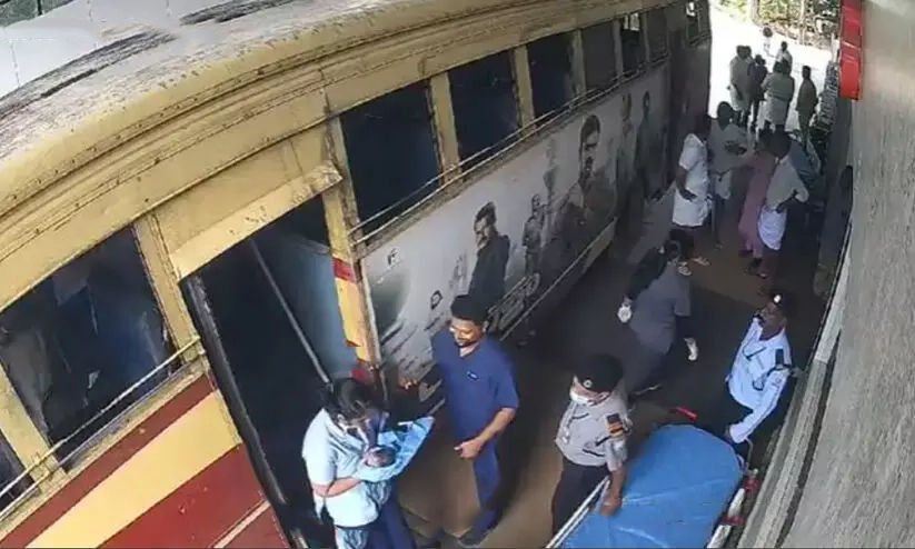 പേരാമംഗലം പൊലിസ് സ്റ്റേഷനു സമീപത്ത് വണ്ടിയെത്തിയപ്പോൾ യുവതിയ്ക്ക് കലശലായ വേദന വന്നു. പേറ്റു നോവാണത് എന്നറിഞ്ഞ ബസ് ജീവനക്കാർ നേരേ അമല ആശുപത്രിയിലേക്ക് വണ്ടി വിട്ടു. എത്തുന്നതിനു മുന്നേ തന്നെ ആശുപത്രി അധികൃതരെ വിവരമറിയിക്കുകയും ചെയ്തു. ബസ് ആശുപത്രി പടി കയറേണ്ട താമസം ഡോക്ടറും നെഴ്സും അടക്കമുള്ള സകല സംവിധാനങ്ങളും റെഡി. ചടപടെ ചടപടെ കാര്യങ്ങൾ നടന്നു. നിമിഷങ്ങൾക്കുള്ളിൽ കെ എസ് ആർ ടി സി യ്ക്കുള്ളിൽ അങ്ങനെ മിടുക്കിയായ ഒരു പെൺകുഞ്ഞ് പിറന്നു.