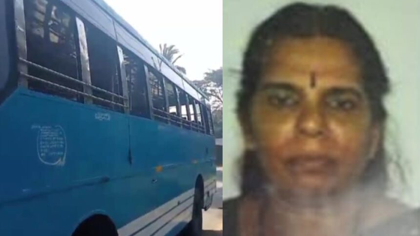 തിരുവില്വാമല ഗവൺമെൻറ് വെക്കേഷണൽഹയർ സെക്കൻഡറി സ്കൂൾ ഗ്രൗണ്ടിന്റെ സമീപത്തുവെച്ചാണ് സംഭവം. അമിത വേഗതയിൽ എത്തിയ ബസ് വളവ് തിരിക്കുന്നതിനിടെയാണ് ഇന്ദിരാദേവി വാതിലിലൂടെ തെറിച്ചുവീണത്. ഞായറാഴ്ച രാവിലെ ഏഴരയോടെയായിരുന്നു അപകടം.