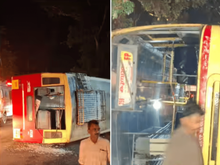 പരിക്കേറ്റവരെ മുക്കം കെ എം സി ടി മെഡിക്കൽ കോളജിൽ പ്രവേശിപ്പിച്ചിട്ടുണ്ട്. ബസ് അമിത വേഗത്തിലായിരുന്നു യാത്ര ചെയ്തിരുന്നതെന്ന് യാത്രക്കാര് പറഞ്ഞു. പരിക്കേറ്റവരുടെ നില ഗുരുതരമല്ല.