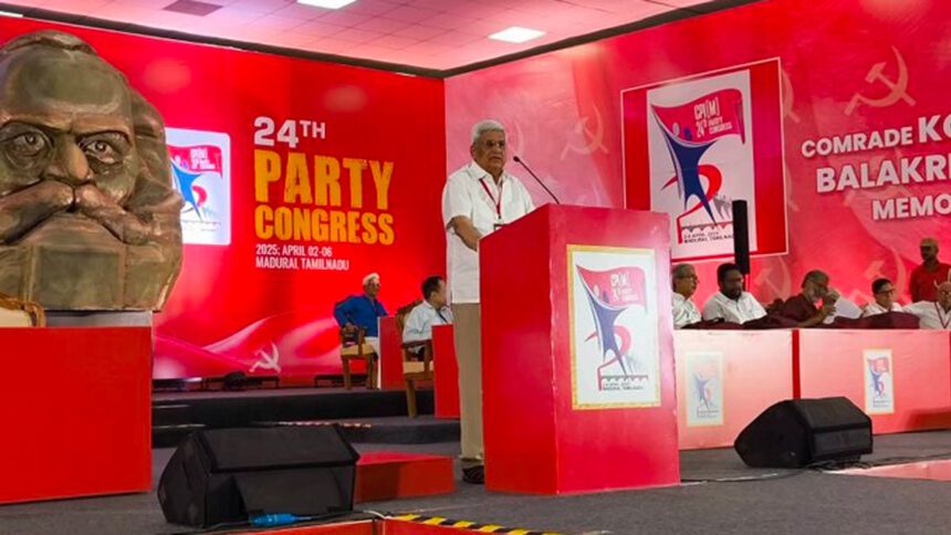 തമിഴ്നാട്ടിലെ മധുരയിൽ നടക്കുന്ന സി പി ഐ (എം) ൻ്റെ ഇരുപത്തിനാലാമത് പാർട്ടി കോൺഗ്രസിന് തുടക്കമായി. പാർട്ടിയുടെ തലമുതിർന്ന നേതാവ് ബിമൻ ബോസ് പതാക ഉയർത്തിയതോടെയാണ് സമ്മേളനത്തിനു തുടക്കമായത്. ആകെ 19 പ്രമേയങ്ങൾ പാർടി കോൺഗ്രസിൽ അവതരിപ്പിക്കും എന്ന് അറിയുന്നു.