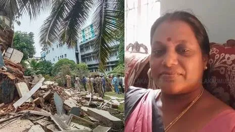 തലയോലപ്പറമ്പ് സ്വദേശി ബിന്ദുവാണ് അപകടത്തിൽ മരിച്ചത്. ചികിത്സയിൽ കഴിയുന്ന മകൾക്കൊപ്പം കൂട്ടിരിപ്പുകാരിയായി എത്തിയതായിരുന്നു ബിന്ദു. തകർന്ന കെട്ടിടത്തിൽ ബിന്ദു കുടുങ്ങിക്കിടന്നത് രണ്ടര മണിക്കൂറാണ്. ബിന്ദുവിനെ കാണാനില്ലെന്ന ഭർത്താവിന്റെ പരാതിയെ തുടർന്നാണ് അന്വേഷണം ആരംഭിച്ചത്. തുടർന്ന് നടത്തിയ പരിശോധനയിൽ കെട്ടിടത്തിന്റെ അവശിഷ്ടങ്ങൾക്കിടയിൽ കുടുങ്ങിയ നിലയിൽ ബിന്ദുവിനെ കണ്ടെത്തുകയായിരുന്നു. കുളിക്കാൻ പോയ സമയത്താണ് കെട്ടിടം ഇടിഞ്ഞു വീണ് അപകടമുണ്ടായത്.