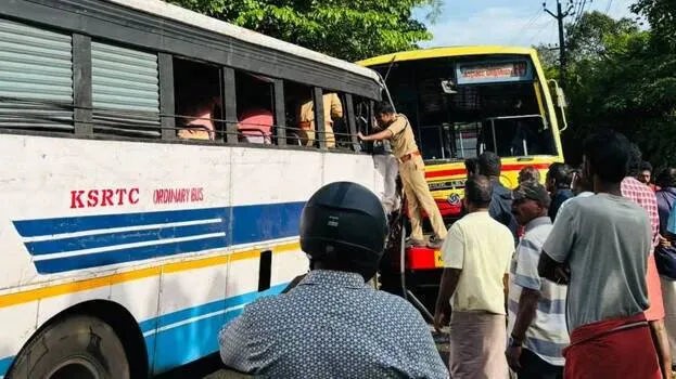 ഓർഡിനറി ബസിന്റെ ഡ്രൈവറുടെ കാല് കമ്പികള്ക്കിടയില് കുടങ്ങിയത് ഏറെ നേരം ആശങ്കയുണ്ടാക്കി. കാട്ടാക്കട, കള്ളിക്കാട് അഗ്നിരക്ഷാ നിലയങ്ങളിൽ നിന്നുള്ള ഫയര്ഫോഴ്സ് സംഘം എത്തി അദ്ദേഹത്തെ പുറത്തെത്തിച്ച് ആശുപത്രിയിൽ പ്രവേശിപ്പിച്ചു.