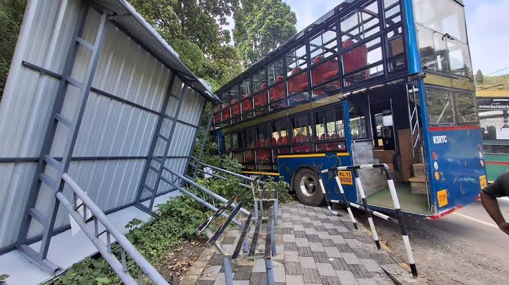 കെ എസ് ആർ ടി സി ഡബിൾ ഡെക്കർ ബസ് അപകടത്തിൽ പെട്ടു