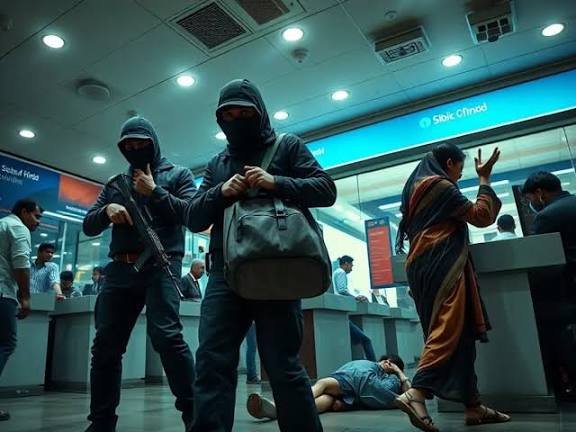 ചൊവ്വാഴ്ച വൈകീട്ടോടെയാണ് വിജയപുരയിലെ ചദ്ചന ടൗണിലെ എസ് ബി ഐ ശാഖയിൽ വൻ കൊള്ള നടന്നത്. വൈകീട്ട് 6.30 ഓടെ അന്നത്തെ പ്രവൃത്തി സമയം അവസാനിച്ച നേരത്താണു കവർച്ച. സൈനിക യൂണിഫോമിനു സമാനമായ വസ്ത്രം ധരിച്ച് എത്തിയ കവർച്ചക്കാരിൽ മൂന്നു പേർ ബാങ്കിന് അകത്തു കയറുകയും രണ്ടുപേർ പുറത്തു കാവൽ നിൽക്കുകയുമായിരുന്നു.