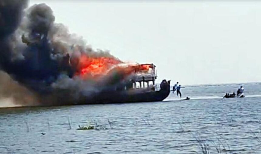 ആറ് ബെഡ് റൂമുകൾ ഉള്ള ഹൗസ് ബോട്ടിനാണ് തീ പിടിച്ചത്. തീപിടിത്തത്തിൽ ഹൗസ് ബോട്ടിലെ ഗ്യാസ് സിലിണ്ടറുകൾ പൊട്ടി തെറിച്ചത് നാട്ടുകാരെ പരിഭ്രാന്തിയിൽ ആക്കിയിട്ടുണ്ട്.